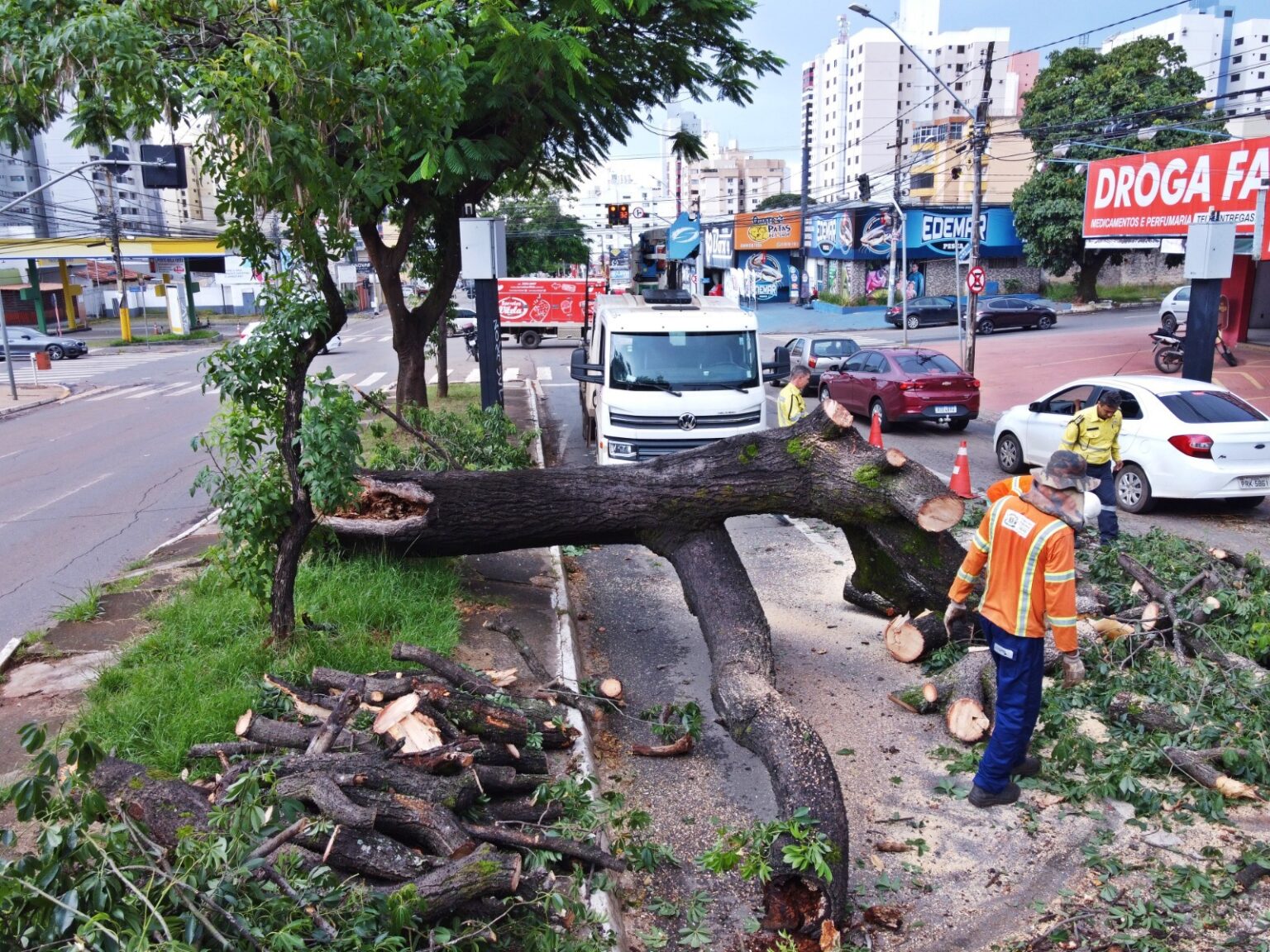 Do total de atendimentos, 18 foram de árvores caídas, com maior concentração no Setor Goiânia 2, além de sete registros de galhos quebrados em diferentes regiões da cidade. Após a liberação das áreas afetadas, as equipes realizam a retirada da massa verde, composta por troncos e galhos, etapa necessária para normalizar o trânsito e restabelecer as condições de circulação.