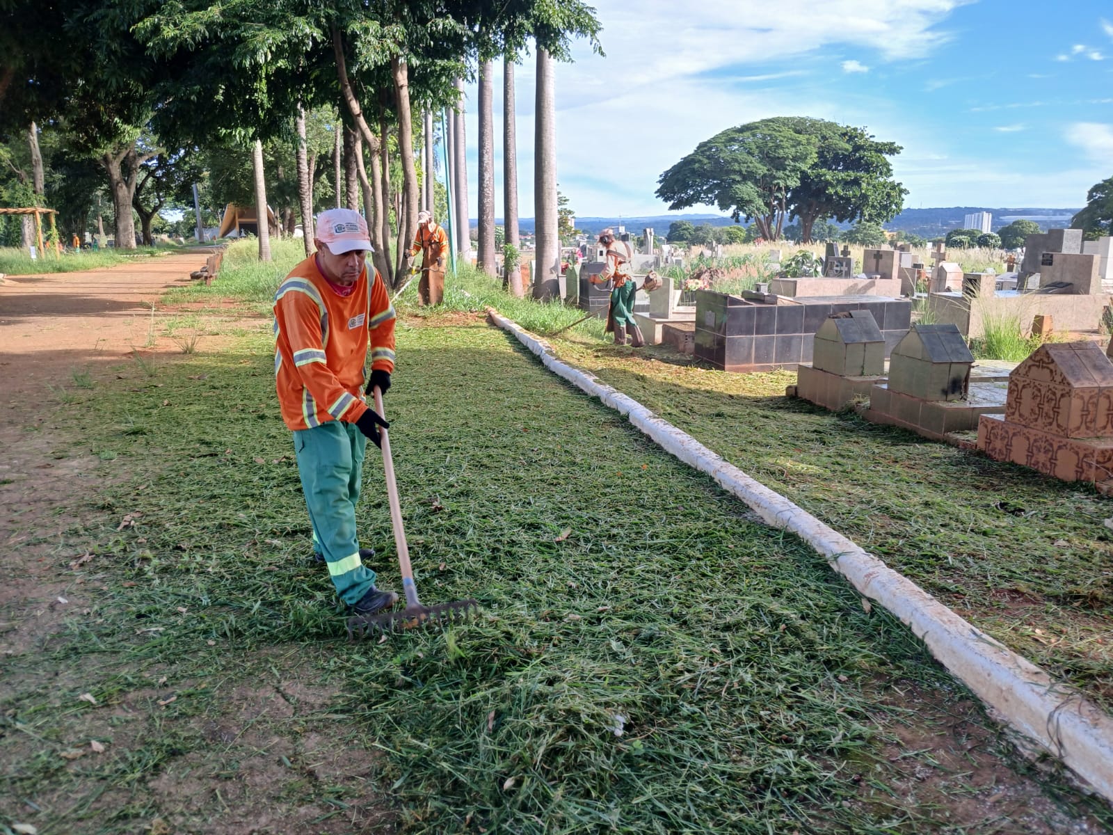 No Cemitério Vale da Paz, uma equipe com 23 trabalhadores atua no corte de mato e na limpeza geral, com previsão de finalização até esta sexta-feira (16/1). Esta é a quinta intervenção realizada para conter o crescimento acelerado da vegetação, intensificado pelo elevado volume de chuvas registrado neste período do ano.
