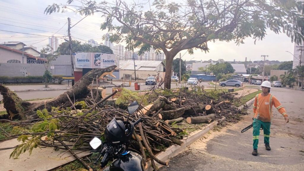 Com equipes de poda e remoção de árvores trabalhando nos turnos diurno e noturno, a empresa atua continuamente na desobstrução das vias após quedas de árvores. A ação assegura que o trânsito não seja interrompido pela queda de galhos, árvores ou pelo acúmulo de resíduos e terra. Na chuva que atingiu Goiânia no fim de setembro, por exemplo, foram registradas mais de 30 ocorrências que exigiram intervenção imediata. Inicialmente, as equipes atuam para desobstruir e liberar as vias, além de mitigar danos patrimoniais. Somente após a liberação total do local, a remoção completa é realizada, com a retirada de todos os galhos e troncos.