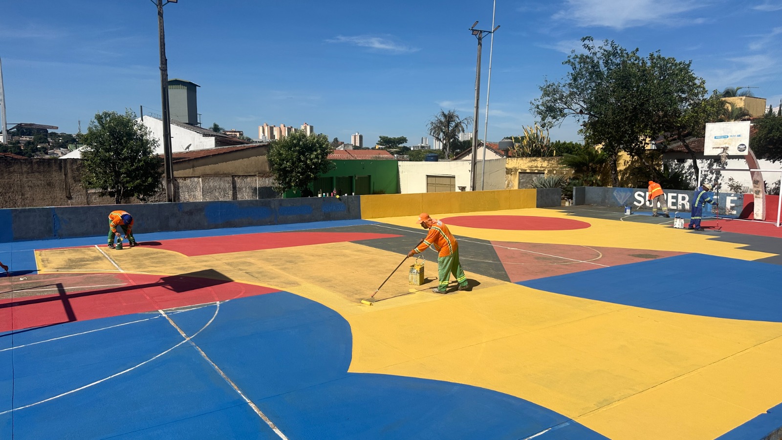 A Companhia de Urbanização de Goiânia (Comurg) concluiu, nesta semana, a requalificação da quadra poliesportiva da Praça 33, localizada na Rua 113-B, no Setor Sul. O espaço, que apresentava trincas, concreto quebrado, fissuras e desgaste na pintura, recebeu nova pintura na mureta e no piso, além de uma revisão completa dos pilares de basquete.