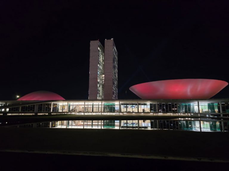 Congresso iluminado de bordô