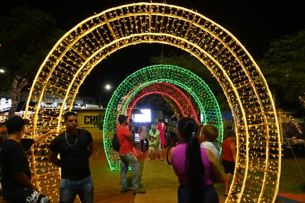 O prefeito de Goiânia, Sandro Mabel, inaugurou mais um ponto de iluminação natalina na capital, como parte do projeto “Natal para Todos”. Na noite desta quarta-feira (26/11), foi a vez das luzes da Praça do Berimbau, no Jardim Guanabara, serem entregues à população. Durante a ação, os visitantes também puderam acompanhar a chegada do Papai Noel, além de atrações artísticas.