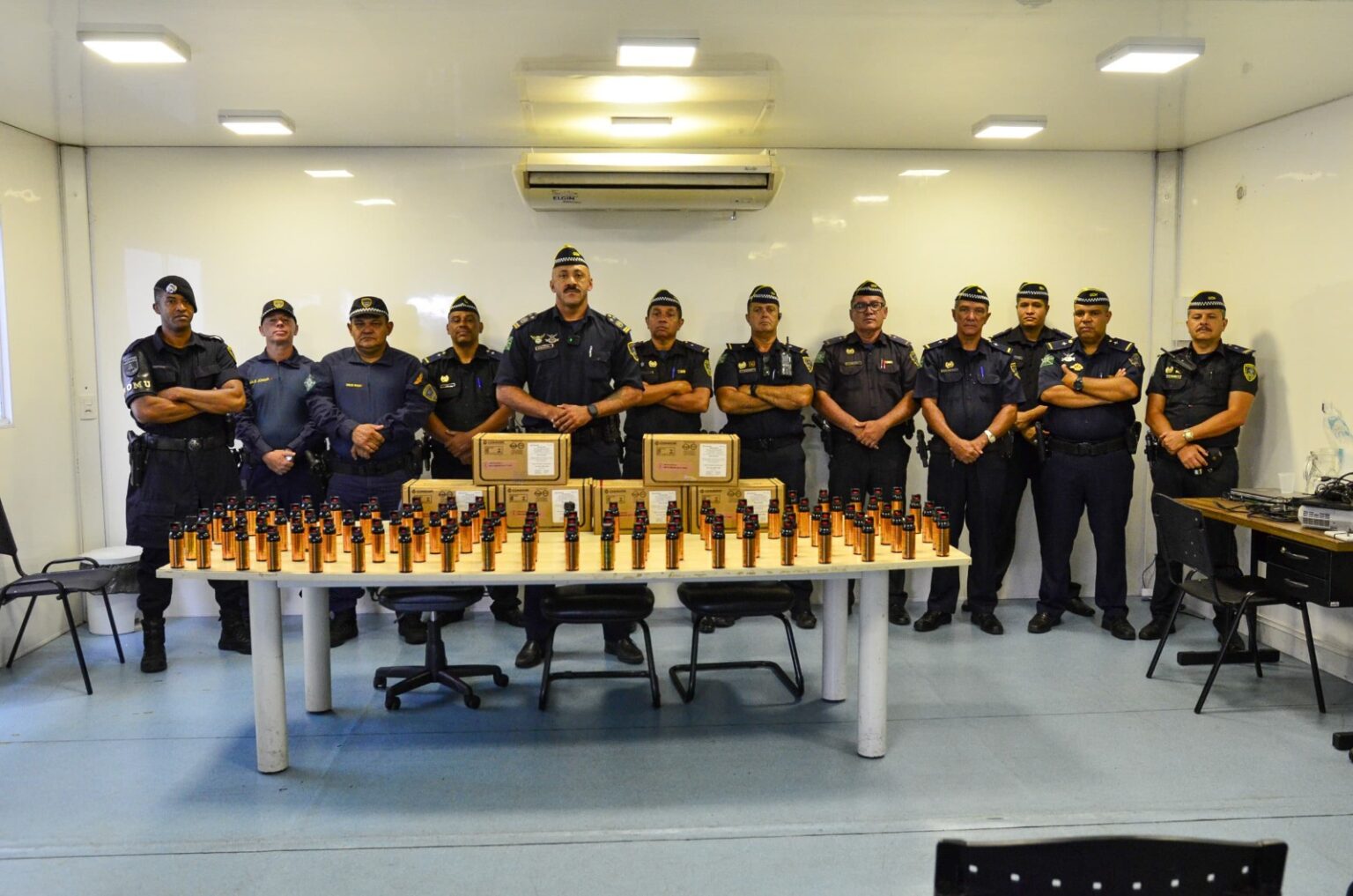 Todos os agentes que receberam o equipamento passaram por treinamento para o uso adequado do spray, com orientação sobre manuseio, aplicação, protocolos legais e medidas de segurança.