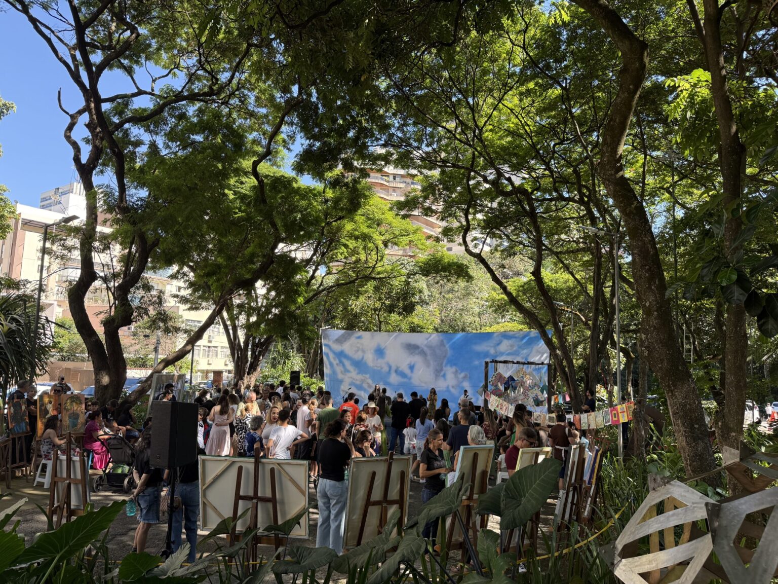 A Prefeitura de Goiânia, por meio da Secretaria Municipal de Cultura (Secult), realizou neste sábado (25/4) mais uma edição do Arte no Bosque, no Bosque dos Buritis. Promovido pelo Centro Livre de Artes (CLA), o evento reuniu alunos, professores, familiares e visitantes em uma manhã dedicada à arte, com exposições e apresentações culturais abertas ao público.