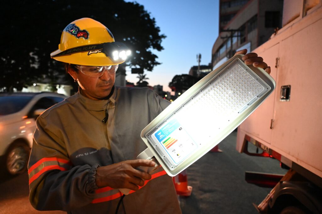 Desde março, o programa já modernizou mais de 30 mil pontos de iluminação, com foco inicial na Região Noroeste, a maior da capital. De acordo com o prefeito Sandro Mabel, toda a infraestrutura antiga foi substituída, com a troca de braços, relés, fiações e acionamentos. “É um trabalho para durar 25 anos. E se uma lâmpada queimar, a empresa tem até cinco dias para trocar”, explicou o prefeito. O cronograma prevê a sequência nas Regiões Norte, Sudoeste e Sul. A meta é alcançar toda a cidade até o fim do ano, com 30 equipes trabalhando simultaneamente, realizando uma média de 1,2 mil pontos de troca por dia.
