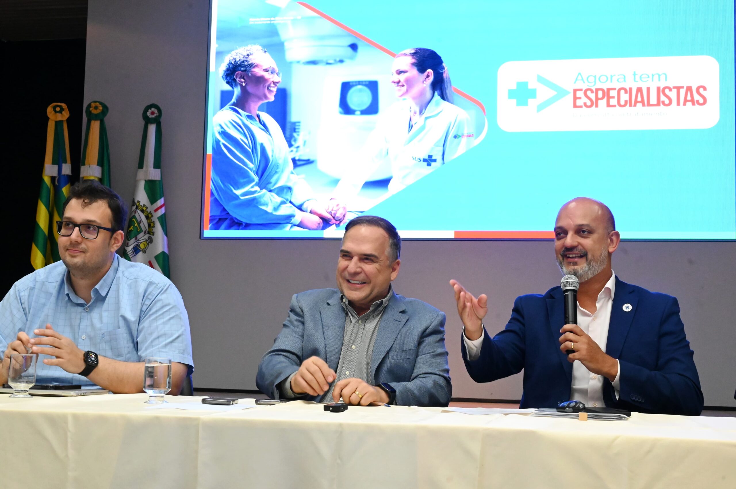 O prefeito Sandro Mabel participou de reunião com representantes do Ministério da Saúde e da rede privada de saúde da capital, na noite desta sexta-feira (4/7), no Paço Municipal, convocando novos parceiros para integrar a rede do Sistema Único de Saúde (SUS) e participar do programa Agora tem Especialistas, do governo federal. A iniciativa traz mudanças no modelo de contratação de serviços especializados do SUS, com o objetivo de reduzir filas e agilizar o acesso da população a consultas, exames e cirurgias de média e alta complexidade.