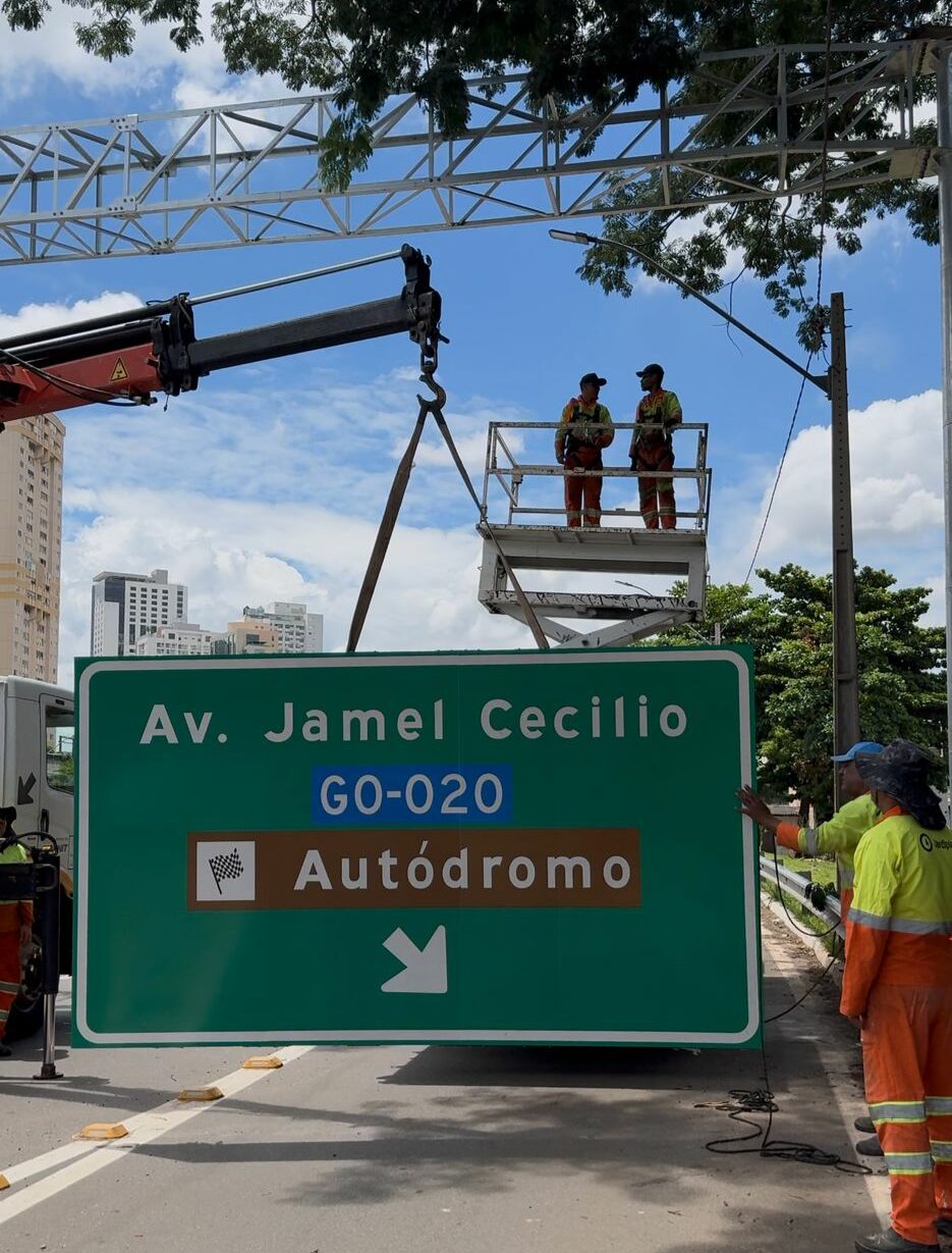 A Prefeitura está reforçando a sinalização da Marginal Botafogo, que tem 14 quilômetros de extensão, com a instalação de placas de orientação de trânsito (POT). Esses equipamentos ajudam motoristas a identificar acessos a bairros, à BR-153 e a pontos turísticos da cidade. Além das placas, seis pórticos de grande porte estão sendo instalados ao longo da via, garantindo melhor visibilidade e segurança para os condutores.