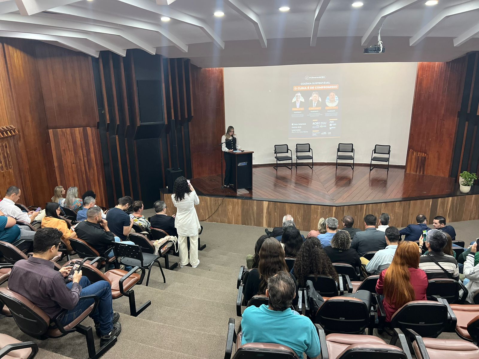 A Prefeitura de Goiânia, por meio da Agência Municipal do Meio Ambiente (Amma), realizou nesta terça-feira (10/6) a palestra Goiânia Sustentável: O Clima é de Compromisso, voltada à promoção do debate sobre sustentabilidade e à ampliação da participação da capital na agenda climática internacional. A ação integrou a programação do Mês do Meio Ambiente e foi realizada em parceria com a Associação Comercial, Industrial e de Serviços do Estado de Goiás (ACIEG), com apoio da Federação das Indústrias do Estado de Goiás (FIEG), na sede da ACIEG. A mediação ficou a cargo de Daniela Limiro, diretora da ACIEG e presidente da Câmara de Meio Ambiente.
