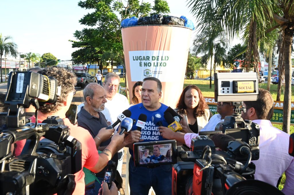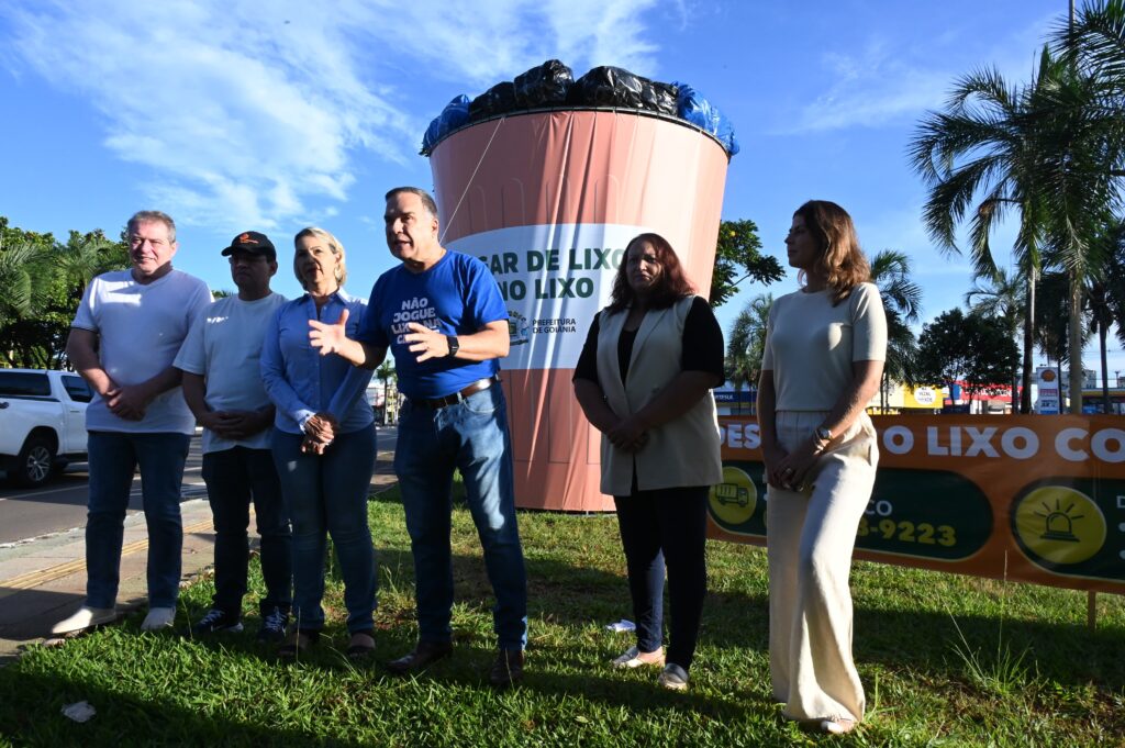 A Prefeitura de Goiânia dá início a uma nova campanha educativa com o objetivo de sensibilizar a população sobre o descarte correto de lixo e entulhos. A ação foi lançada pelo prefeito Sandro Mabel, neste sábado (26/4), na Praça Walter Santos, no Setor Coimbra, onde foi instalada uma lixeira de 5 metros para chamar a atenção para a necessidade de que cada cidadão colabore para manter a cidade limpa. “Estou muito confiante de que a população vai se engajar, como vem fazendo no dia a dia, para que nós possamos resolver esse problema e manter a cidade limpa. A prefeitura está fazendo sua parte”, afirmou o prefeito, durante o lançamento.