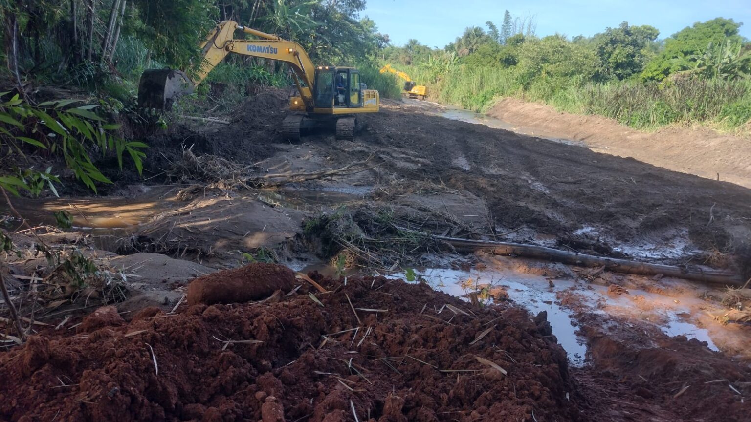 Após o recebimento da demanda, técnicos da Seinfra foram ao local para realizar uma vistoria, avaliar a extensão dos danos e definir o projeto de recuperação da área afetada, estabelecendo os materiais, equipamentos e equipes necessários para o serviço.