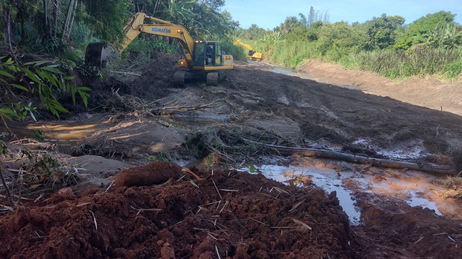 A técnica adotada para a contenção da erosão é o enrocamento, que consiste na utilização de pedras e terra para a recomposição dos taludes — as inclinações naturais das margens dos cursos d’água, responsáveis por conduzir as águas de maneira controlada. Essa solução permite garantir a estabilidade das margens e preservar o leito do córrego, evitando novos processos erosivos e danos ambientais.