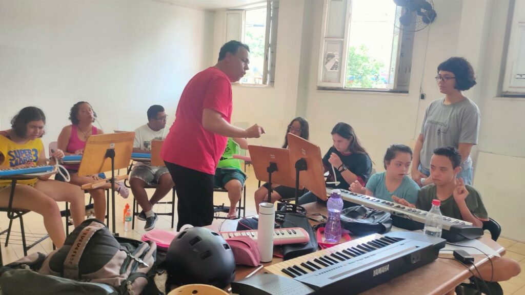 O evento apresenta os resultados das atividades desenvolvidas no primeiro semestre de 2025 com 97 alunos, incluindo 16 com Síndrome de Down, das turmas de iniciação musical, em aulas realizadas na sede da Orquestra Sinfônica de Goiânia, no Edifício Parthenon Center, no Centro.